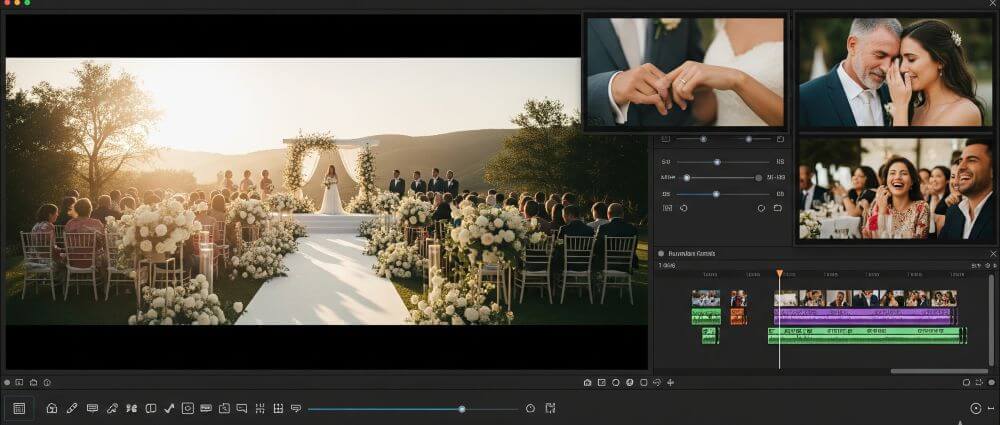 Tip: Add B-roll, close-ups, or alternative angles to keep visuals dynamic and reinforce your story. For wedding reels, mix wide venue shots with intimate emotional moments.